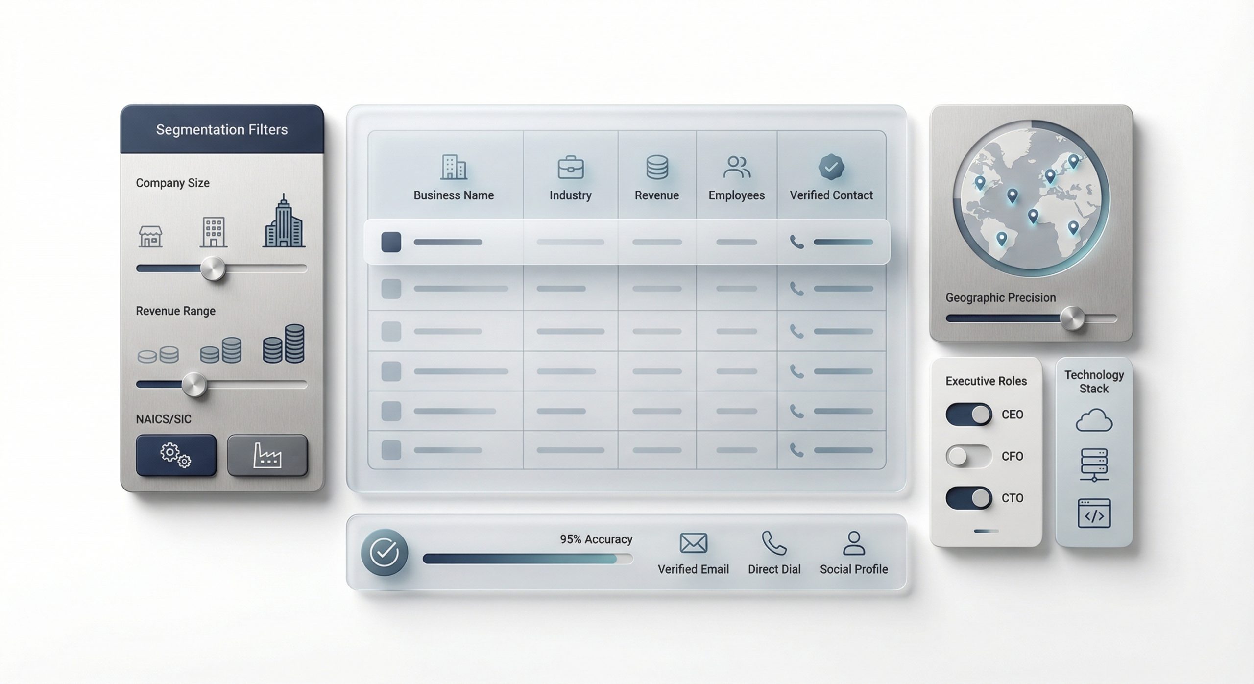 Verified business databases filtered by industry, revenue, size, location, and executive roles. Stop wasting budget on generic lists—reach companies that match your exact B2B profile.